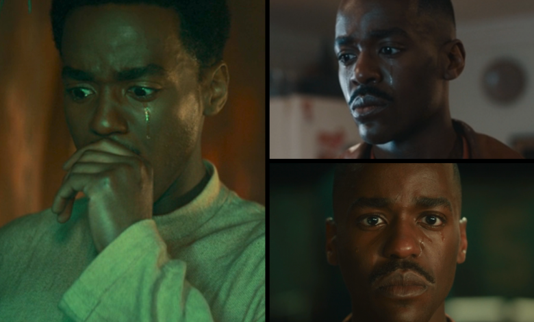 In the latest Doctor Who season opener (pictured below, on the left), Ncuti Gatwa‘s Fifteen spilt a tear whilst processing the sudden death, at the hands of their robot overlords, of Sasha, a Belindachandra-1 resident he had grown quite close to in his six months on the planet.